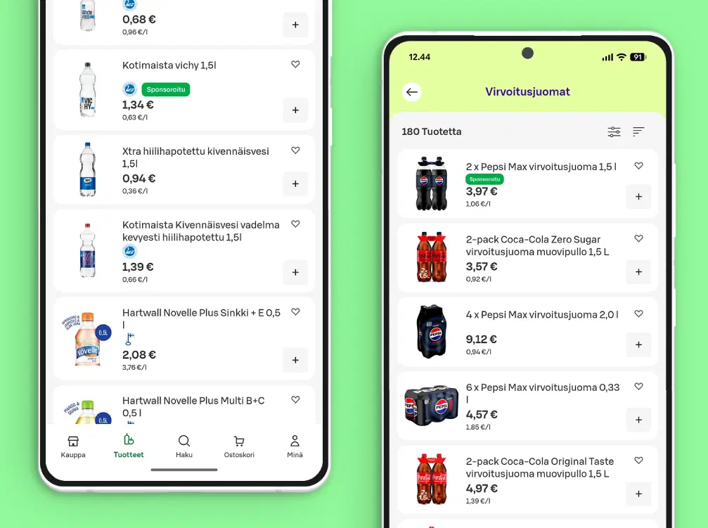 Kun käymme fyysisessä kaupassa, näemme yhdellä silmäyksellä satoja tuotteita hyllyllä. Verkkokaupassa mobiililaitteella näkyy kerralla keskimäärin vain neljä tuotetta. Kun etsin karkkia S-Kaupoissa, saan yhteensä 596 vastausta tuotelistana. Tätä listaa ei kovinkaan moni selaa loppuun asti ja kuluttajan on siis yhä vaikeampi löytää tuotteesi, kun siirrymme fyysiseltä hyllyltä mobiilihyllylle.Fyysisessä kaupassa on tärkeää, että tuotteesi on silmien tasolla. Mobiilihyllyllä on tärkeää olla ensimmäisten tuotteiden joukossa, jotka kuluttaja näkee etsiessään tuotteita tai selatessaan kategorian valikoimaa.Suurin osa tuotteista päätyy ostoskoriin haun kautta
