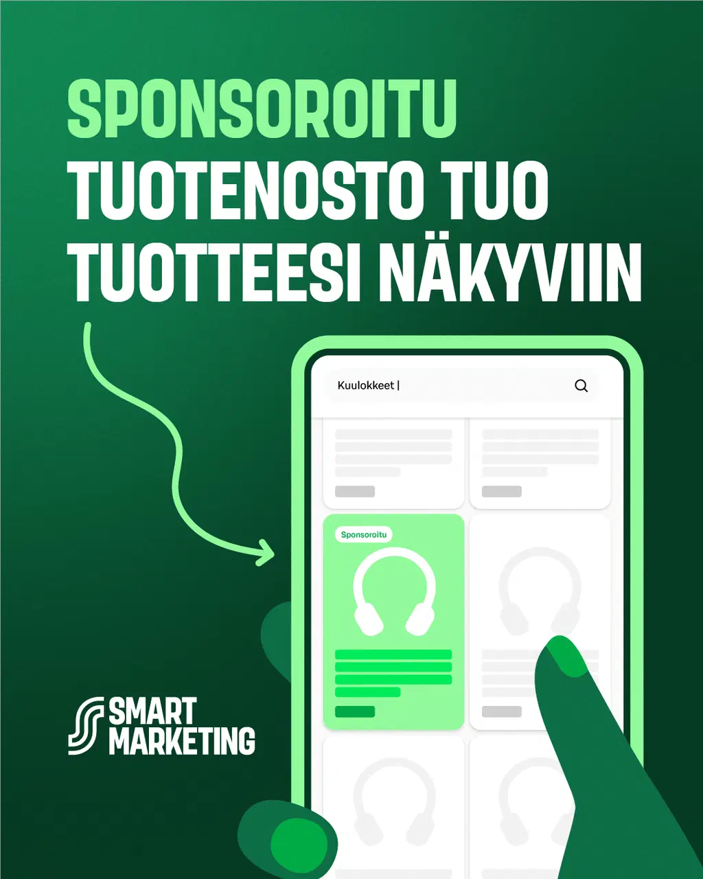 Sponsoroidut tuotenostot ovat mainoksia, joilla pääset hakutulos- ja kategoriasivun tuotelistauksen kärkeen. Näin tavoitat asiakkaat, jotka jo aktiivisesti etsivät tuotteita kategoriastasi ja tekevät ostopäätöksiä. Sijoittelu ensimmäisen 10 tuotteen joukossa valituilla hakutulos- ja kategoriasivuilla lisää tuotteidesi näkyvyyttä oikealle asiakkaalle, oikeassa hetkessä.